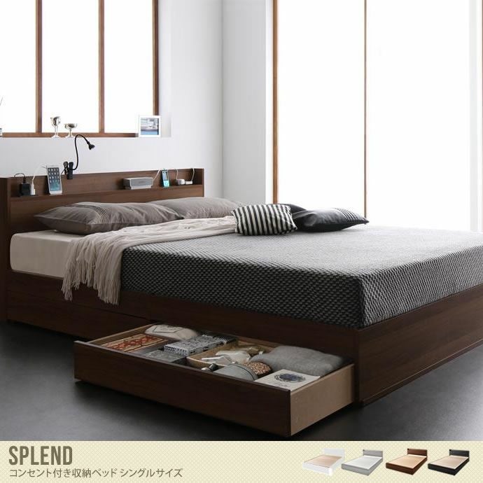 シンプルスタイルの『Splend』からシングルベッドの登場です。コンセントが付いていたり、スリムタイプのヘッドボードなど機能性ばっちり! ベッド下には、2杯の引き出し収納があります。散らかりがちな洋服や小物類をひとまとめに収納◎ お部屋もすっきりと片付きますよ♪ 引き出しは、左右どちらからでも引き出せて使い方は自由自在です。間取りに合わせて選択いただけます。4カラーあるので人気の北欧スタイルをはじめ、モダンスタイルまでさまざまなテイストのお部屋とマッチします♪
