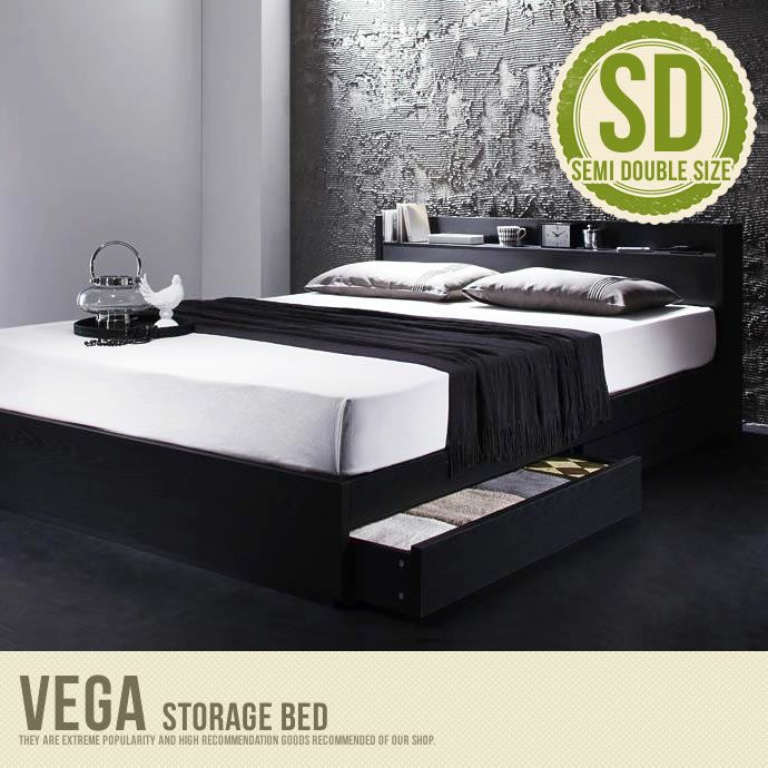 【送料無料】セミダブル VEGA 引出し・コンセント付きベッド シンプル 幅123cm