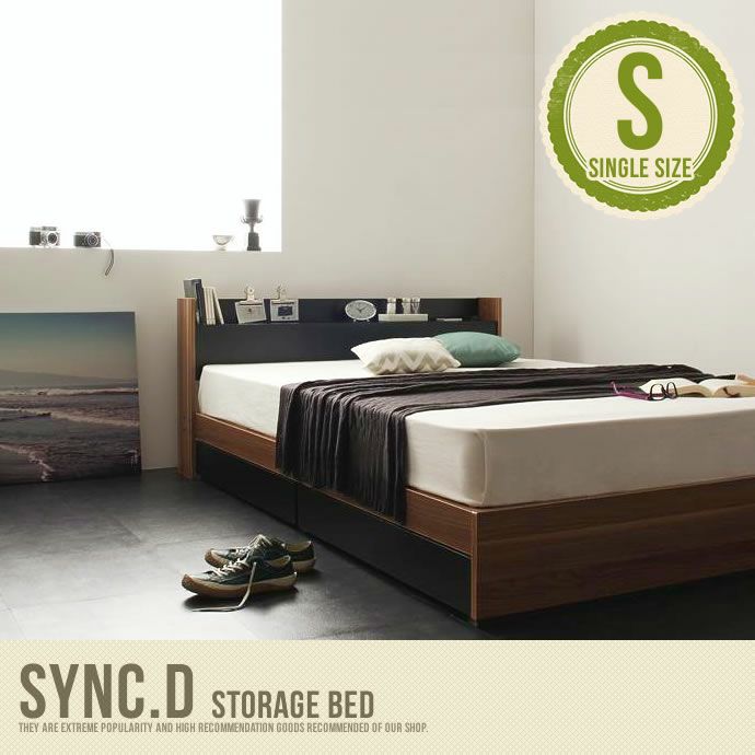 【送料無料】シングル sync.D 引出し・コンセント付きベッド 幅104cm