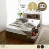 【送料無料】幅120 ベッド セミダブル ウォールナット ベッド ベッドフレーム 収納付きベッド USB付き コンセント付き 収納付き 棚付き 宮付き 宮棚 ライト付き 多機能 引き出し ベッド下収納 フラップ扉 寝室