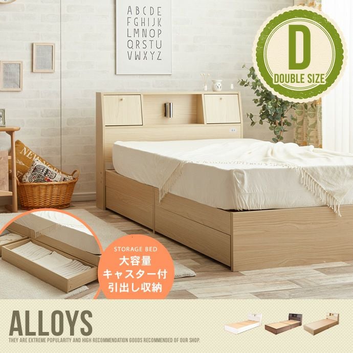 【送料無料】【ダブル】【オリジナルポケットコイルマットレス付】 ベッド ダブルベッド 収納付ベッド 引出し収納付ベッド 収納付 引出し付 照明付 コンセント付 シンプル 北欧 Alloys