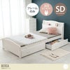 【送料無料】幅124 ベッド 収納付きベッド すのこベッド セミダブル ホワイト おしゃれ おすすめ ベッドフレーム 単品 引き出し 2杯 2口コンセント付き 宮棚 上品 大人可愛い かわいい 一人暮らし ワンルーム