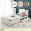 【送料無料】幅124 ベッド 収納付きベッド すのこベッド セミダブル ホワイト おしゃれ おすすめ ベッドフレーム ボンネル マットレス セット 引き出し 2杯 2口コンセント付き 宮棚 上品 大人可愛い かわいい 一人暮らし ワンルーム