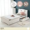 【送料無料】幅124 ベッド 収納付きベッド すのこベッド セミダブル ホワイト おしゃれ おすすめ ベッドフレーム ポケットコイル マットレス セット 引き出し 2杯 2口コンセント付き 宮棚 上品 大人可愛い かわいい 一人暮らし ワンルーム