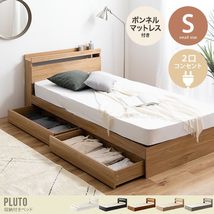 【送料無料】Pluto プルート ベッド シングル 【ボンネルコイルマットレス付き】 ベッド ベッドフレーム マットレス付きベッド ボンネルコイル フロアベッド ローベッド ロータイプ すのこベッド 一人暮らし ワンルーム 宮棚 ヘッドボード コンセント