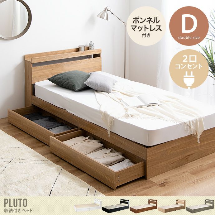 他の画像を見る 【送料無料】Pluto プルート ベッド ダブル 【ボンネルコイルマットレス付き】 ベッド ベッドフレーム マットレス付きベッド ボンネルコイル フロアベッド ローベッド ロータイプ すのこベッド 一人暮らし ワンルーム 宮棚 ヘッドボード コンセント ベット 販売価格 ¥ 38,999 税込 送料込 カートに入れる お気に入りに登録する