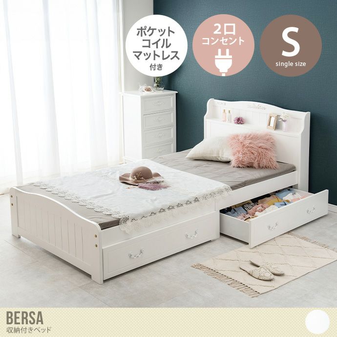 他の画像を見る 【送料無料】幅102 ベッド 収納付きベッド すのこベッド シングル ホワイト おしゃれ おすすめ ベッドフレーム ポケットコイル マットレス セット 引き出し 2杯 2口コンセント付き 宮棚 上品 大人可愛い かわいい 一人暮らし 販売価格 ¥ 71,840 税込 在庫切れ 送料込 カートに入れる お気に入りに登録する