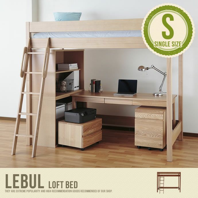 「【シングル】Lebul」。天然木を使用したシンプルなデザインのロフトベッド。天然木は使い込むほど味が出る素材となっておりますので、ずっと長い間お使いいただけます。