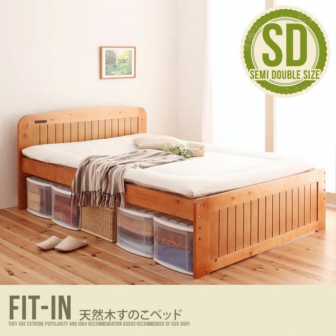 【送料無料】セミダブル Fit-in すのこベッド 高さ調節 幅125cm 北欧 シンプル ナチュラル 収納