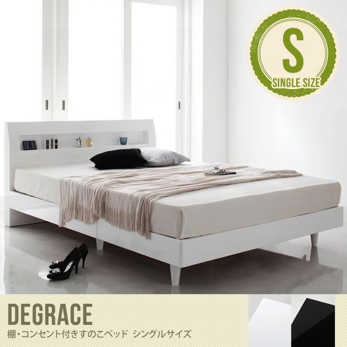 【送料無料】【シングル】【超高密度ポケットコイルマットレス付】 Degrace宮棚付き コンセント付き モダンデザイン 2口コンセント すのこベッド シンプルデザイン ベッド ホワイト ブラック
