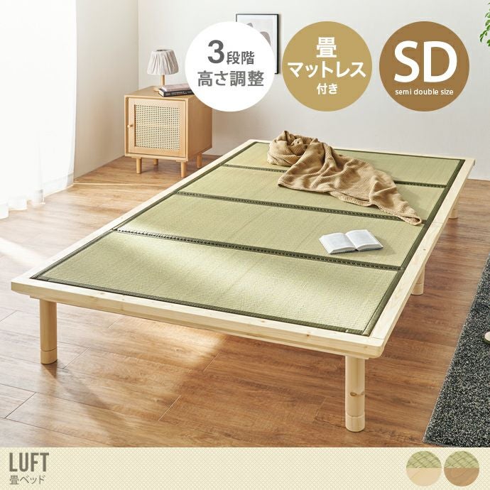 【送料無料】幅130 ベッド すのこベッド セミダブル ナチュラル ベッド マットレス付きベッド 畳ベッド ローベッド セミダブル ナチュラル SD 鞍馬 3段階 高さ調節 継ぎ脚 ベッド下収納 畳 すのこ 吸湿 湿気 木製 一人暮らし