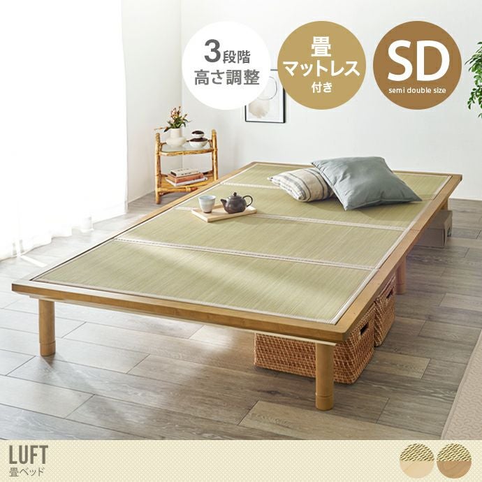 【送料無料】幅130 ベッド すのこベッド セミダブル ナチュラル ベッド マットレス付きベッド 畳ベッド ローベッド セミダブル ナチュラル SD 貴船 3段階 高さ調節 継ぎ脚 ベッド下収納 畳 すのこ 吸湿 湿気 木製 一人暮らし