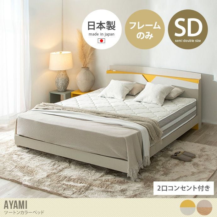 【送料無料】幅121 ベッド ローベッド セミダブル アイボリー ベッド デザインベッド ベッドフレーム 日本製 国産 バイカラー ツートンカラー マットカラー 塗り壁 コンセント付き 木目 宮付き 棚付き 寝室