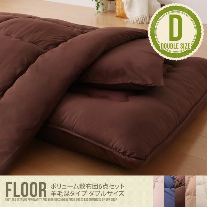 【送料無料】FLOOR ボリューム敷布団6点セット ダブル アイボリー (羊毛混タイプ) 布団 ダブル アイボリー サイズ セット