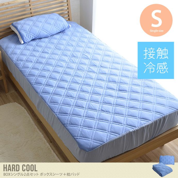 超冷感寝具『ハードクール』シリーズのシングルサイズボックスシーツと枕パッドの2点セットの登場です。リバーシブル仕様で、表側にはひんやり冷感生地を、裏側にはさらさらとした柔らかい質感のパイル生地を使用。冷感生地にはPCM加工を施しており、一般の冷感生地の約2倍の冷感値を実現しました。寝返りを打つ度、吸熱・放熱を繰り返し、ひんやり感が持続するので、快適な寝心地を与えてくれます。また、洗濯機で丸洗いが可能なので、いつでも清潔にご使用いただけます。