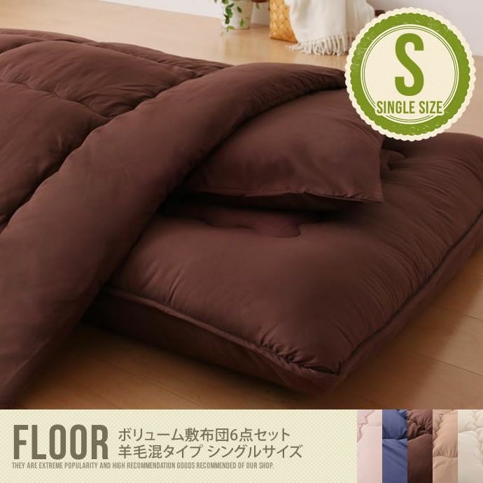 他の画像を見る 【送料無料】FLOOR ボリューム敷布団6点セット シングル アイボリー (羊毛混タイプ) 布団 シングル アイボリー サイズ 販売価格 ¥ 26,080 税込 在庫切れ 送料込 カートに入れる お気に入りに登録する