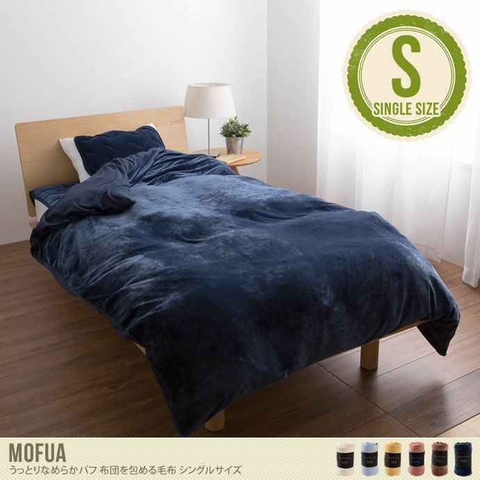 「Mofua うっとりなめらかパフ 布団を包める毛布」(シングルサイズ)。いちばんなめらかなmofuaが誕生!女性ならお馴染みの「化粧パフ」をモチーフに、いつまでもスリスリしたくなるやわらかな肌ざわりとあったかさを追求しました。