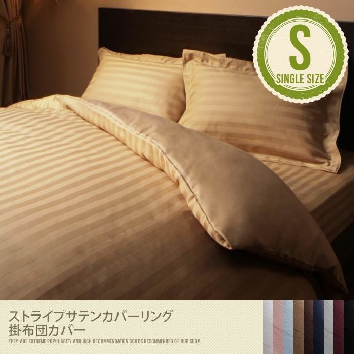 寝室の雰囲気をグッと引き立てる、高級感のあるストライプサテン素材のシングル掛布団カバーです。