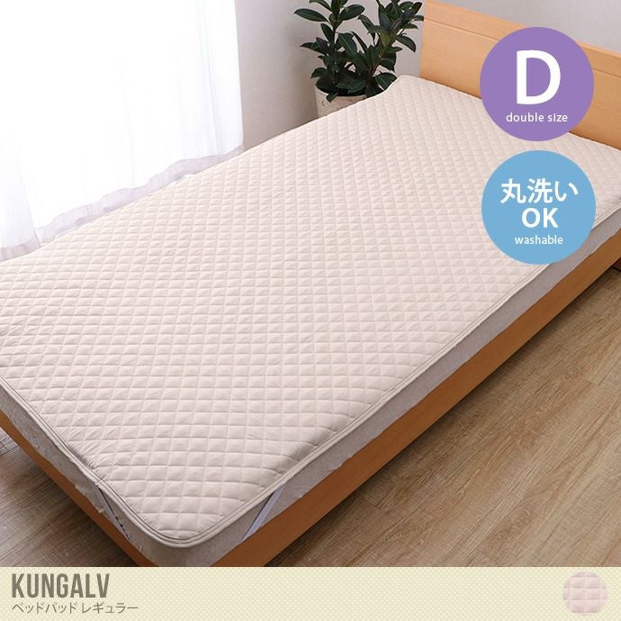 ベッドやお布団に敷くことでクッション性が上がり、寝心地を向上させ寝具の汚れからも守ってくれる『Kungalv (クングエルブ)』シリーズのベッドパッド。四隅にはズレ防止用のゴムバンド付きで、マットレス、敷き布団どちらでもご利用いただくことが可能です。ご家庭の洗濯機で丸洗いできるので、いつでも清潔にお使いいただけます。