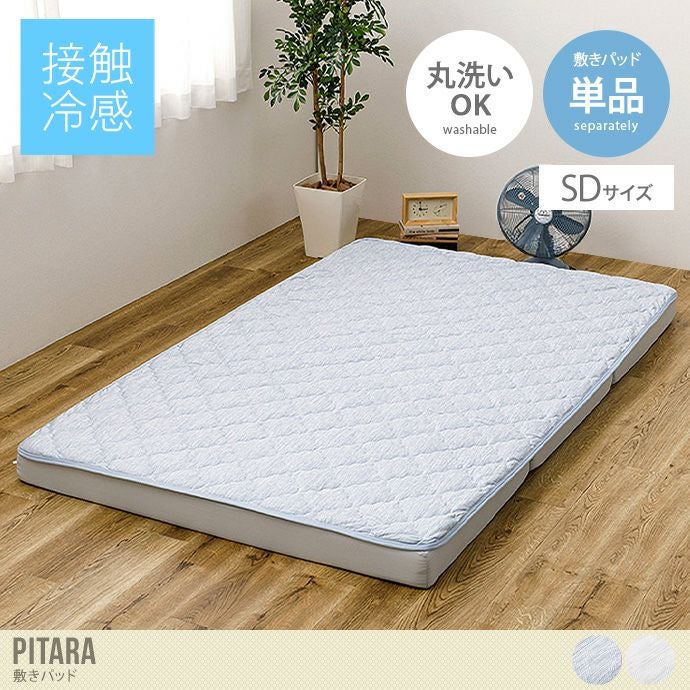 ピタッとズレずに密着してくれる『Pitara(ピターラ)』敷きパッド。ひんやり気持ちのいい接触冷感生地を使用しており、寝苦しい夏の夜も快適にお過ごしいただけます。また別売りのマットレスと組み合わせることにより、吸いつくような密着感でズレにくいため、寝具のズレ問題もラクラク解決。さらにご家庭で洗濯ができるため、いつでも清潔にお使いいただけます。