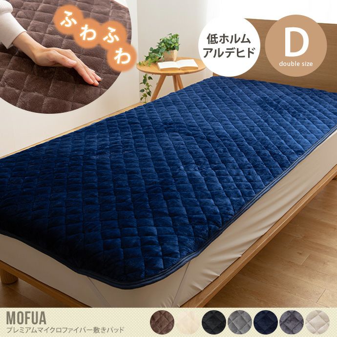 ふわっふわでなめらかな肌触りの寒い季節の人気商品となっている『Mofua(モフア)』シリーズから、プレミアムマイクロファイバー敷きパッドのダブルサイズが登場しました。シルクやアンゴラなどの天然繊維を超える極細繊維が使われているので、繊維の隙間に空気の層ができて体温で暖まった空気をしっかりキープしてくれます。四隅にゴムバンドが付いているのでズレる心配がありません。また一般的なマイクロファイバー毛布と比べると極細繊維で密度が高いので毛が抜けにくく、ご自宅の洗濯機で手軽に洗濯できます。