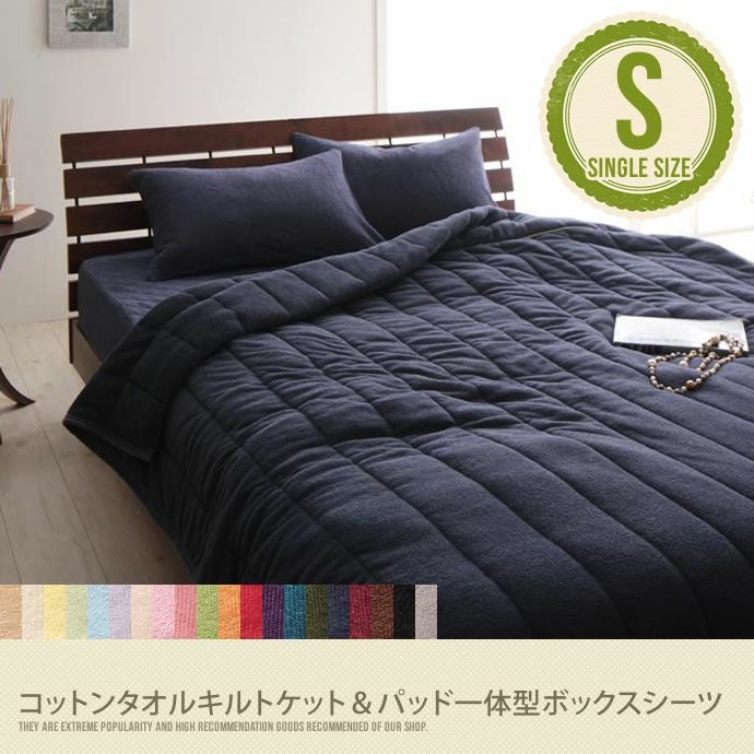 オールシーズン使える、やわらかな肌触りのシングルキルトケット&シングルパッド一体型ボックスシーツの2点セット!インテリアに合わせられる20色をご用意しました。