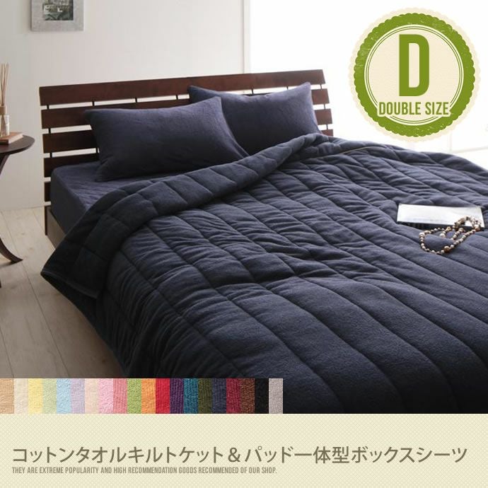 オールシーズン使える、やわらかな肌触りのダブルキルトケット&ダブルパッド一体型ボックスシーツの2点セット!インテリアに合わせられる20色をご用意しました。