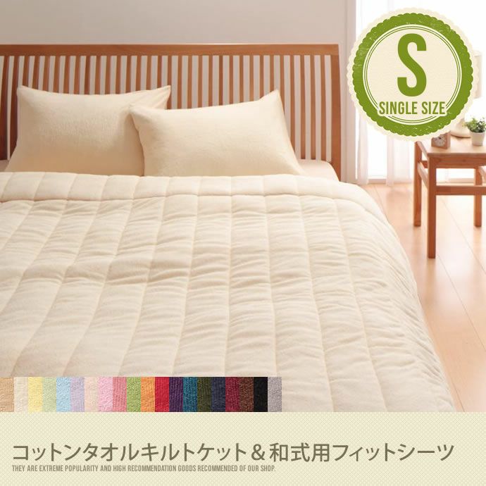 コットンタオルキルトケット&和式用フィットシーツ【シングル】アイボリー コットンタオル