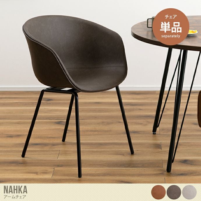 ソフトレザー×スチールの高級感溢れる『Nahka(ナフカ)』アームチェア。素材には手触りの良い本革調生地のソフトレザーを使用し、高級感のある仕上がりに。お部屋に置くだけで洗練された雰囲気を演出します。また身体をすっぽり包み込んでくれる形状のため、座り心地も抜群。長時間座っていても疲れにくいため、快適にお使いいただけます。