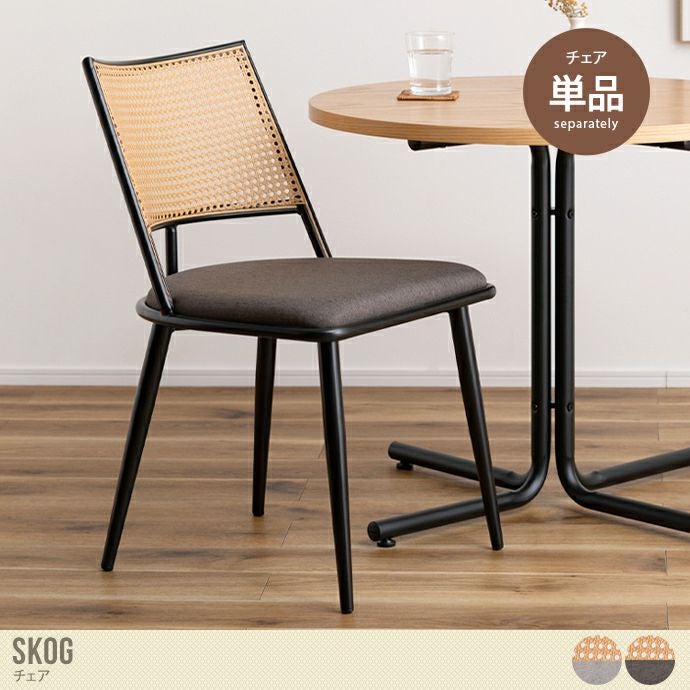 ナチュラルなラタン調と上質なファブリックが組み合わさった『Skog(スコグ)』チェア。あたたかみがありながらも、細身のブラックスチール脚が空間を引き締め洗練された印象に。ナチュラルや韓国インテリアなど様々なテイストのお部屋に馴染みます。またラタン調の背もたれは耐久性が高いポリエチレンを使用しているため、お手入れも簡単。ささくれ等もできにくく、小さなお子様がいるご家庭でも安心してお使いいただけます。
