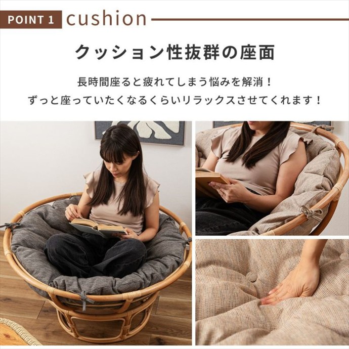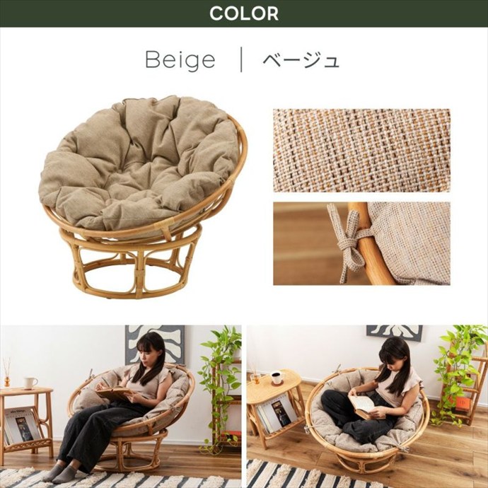 まるで鳥の巣のように、ふんわりと体を包み込むネストサークルチェア。天然ラタンで丁寧に編み込まれたベースは、自然素材ならではの優しいぬくもりを感じられ、置くだけでお部屋をリゾートのような雰囲気に。またボリュームたっぷりのクッションは、体をゆったり包み込み、読書やティータイムをより穏やかで贅沢なひとときへと導いてくれます。