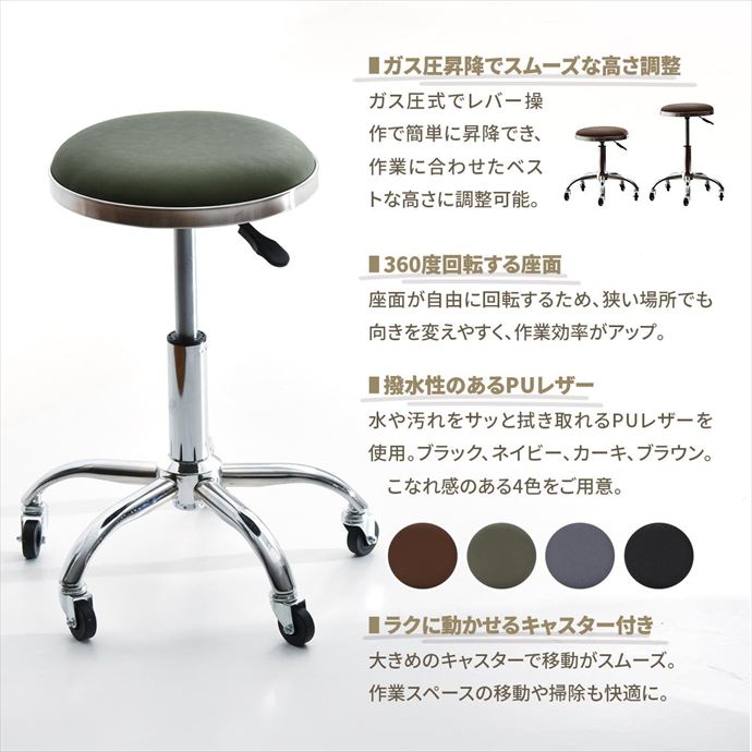 幅51 チェア スツール 椅子 丸椅子 キャスター付き椅子 作業椅子 おしゃれ おすすめ 安い キャスター付き 昇降 高さ調節 回転 レザー調 キッチン エステ ネイル サロン 美容室 カット カフェ オフィス コンパクト ブラック