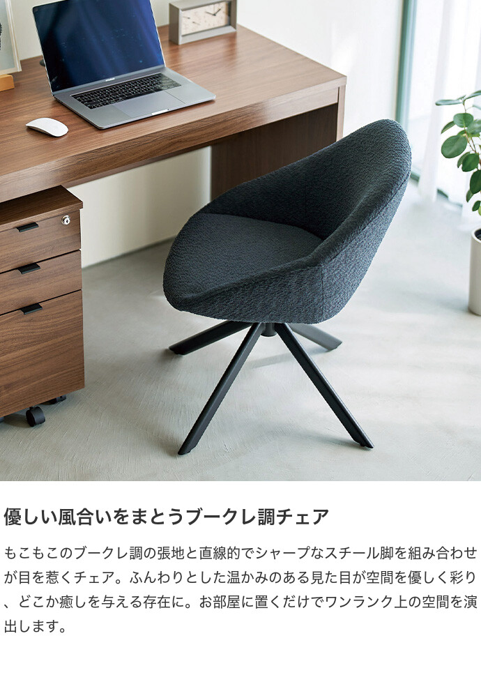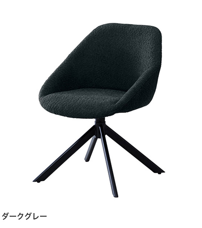 【送料無料】幅55 チェア オフィスチェア 椅子 いす イス 回転チェア ラウンドチェア チェアー ダイニングチェア デスクチェア おしゃれ おすすめ 安い 回転 肘付き 1脚 回転式 黒脚 白脚 ブークレ もこもこ 韓国 かわいい かっこいい ダークグレー