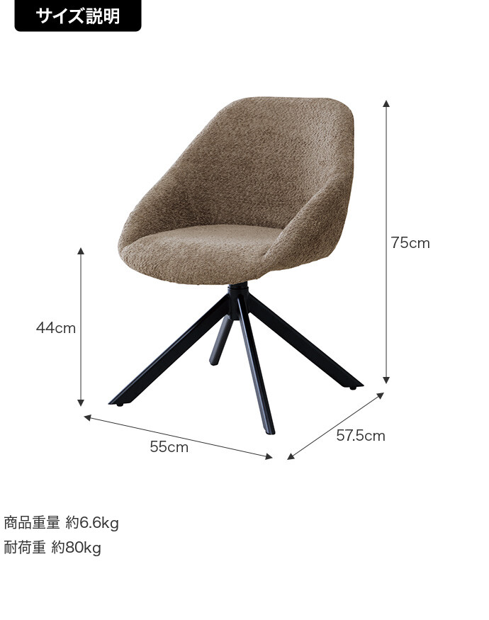 サイズ幅55cm×奥行57.5cm×高さ75cm(座面高:44cm)