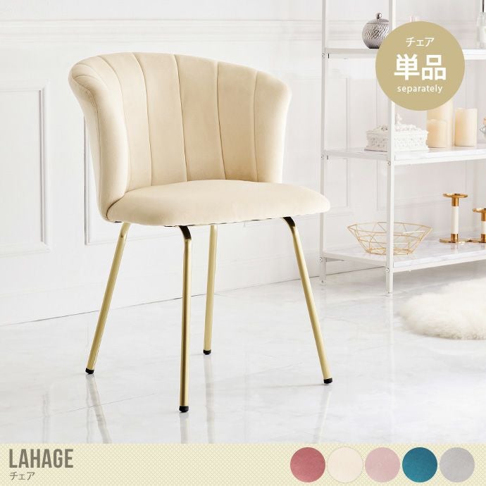 貝殻のようなシルエットにゴールドの脚がエレガントな『Lahage(ラージュ)』チェア。360度どこから見ても絵になる綺麗なシルエットに仕上げました。また光沢感のある滑らかな触り心地のベロア風生地を使用しており、高級感のある上質な仕上がりです。さらに緩やかなカーブを採用した背もたれは、優しく体にフィット。リラックスタイムを優雅に、心地よい時間にしてくれるチェアです。