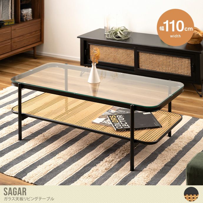 異素材の調和が美しい『Sagar(サーガル)』ガラス天板テーブル。透明感のあるガラス天板とナチュラルなラタン調ラックが、リビングに軽やかさと温かみをプラス。さらにブラックスチールのフレームが空間全体の印象をグッと引き締め、洗練された雰囲気を演出します。抜け感のあるデザインは圧迫感を与えずお部屋を広く見せる効果があるため、一人暮らしやワンルームにもおすすめです。