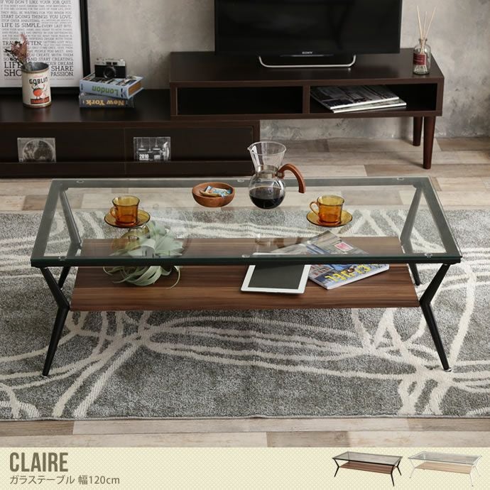『Claire』ガラステーブル(幅120cm)は、シンプルなフォルムでお部屋に圧迫感を与えず、一人暮らしの方やカップルでもお使いいただけるガラステーブルです。ガラス天板の下には雑誌やリモコンなどが置ける収納スペースがあり使い勝手バツグン!ディスプレイテーブルとしてもお使いいただけるので、お気に入りの小物や雑貨を飾って自分だけのディスプレイが楽しめますよ♪