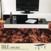 WHとBKの鮮やかなコントラストが美しいシュールシリーズ。 テーブルにも統一感を出すため側面を波状仕上げにした。テーブル天板ガラスには飛散防止フィルムを貼り。 機能面では、雑誌など散らかりがちな小物などを収納できる引出し付き。 脚部はスッキリとしたデザインで、アジャスターも付けました。