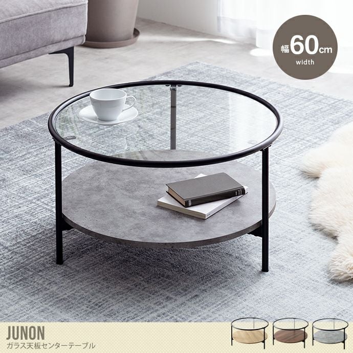【送料無料】Junon ジュノン 幅60 センターテーブル ローテーブル ガラステーブル リビング コーヒーテーブル ミニ 丸形テーブル テーブル 机 座卓 おしゃれ おすすめ 安い 収納 棚付 丸形 円形 丸い 木製 木目 石目調 ストーン かっこいい ブラック/ナチュラル