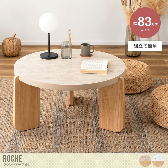 お部屋に置くだけで、ぐっと洗練された空間になる『Roche(ロッシュ)』ラウンドテーブルL。大理石調の天板は上品な存在感を、天然木の脚部がやわらかな温もりを添える上質なデザインです。幅83cmの大きめサイズで、センターテーブルとして複数人での使用にもぴったり。同シリーズのSサイズと組み合わせればネストテーブルとしても活躍します。