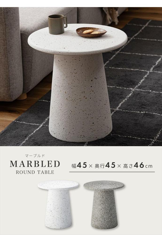 【送料無料】幅45 サイドテーブル ラウンドテーブル ナイトテーブル ミニテーブル 小物置き おしゃれ おすすめ 安い 円形 丸型 丸い テラゾー柄 石目調 ソファサイド ベッドサイド 韓国インテリア 軽量 完成品 組立不要 一人暮らし グレー
