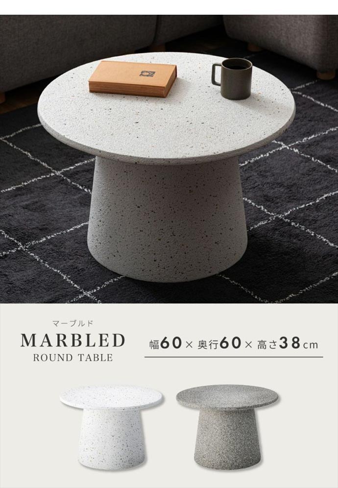 【送料無料】幅60 センターテーブル ラウンドテーブル サイドテーブル ローテーブル テーブル おしゃれ おすすめ 安い 円形 丸型 丸い テラゾー柄 ざらざら 石目調 上品 ソファ リビング 韓国インテリア 軽量 完成品 組立不要 一人暮らし グレー