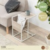 マガジン収納と、天板広々の組み換え2WAY仕様のサイドテーブル『Terni(テルニ)』。コの字のデザインでソファやベッド下に差し込むことができ、テーブルを引き寄せることができるのでラクに作業をすることができます。脚底にはアジャスターがついている為、がたつきにもすぐ対応でき安定性に優れています。