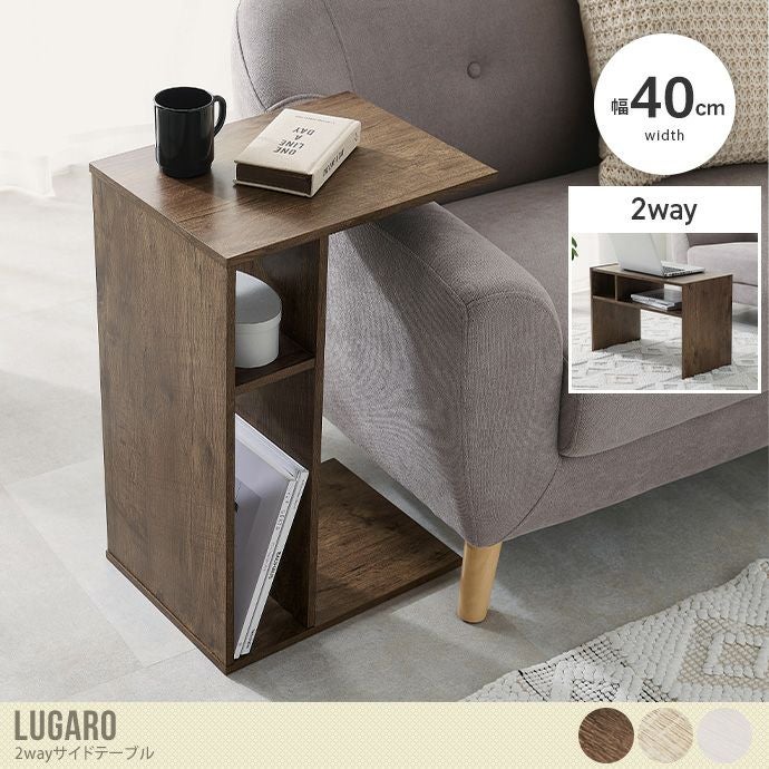 使い勝手のいい、コの字型デザインが特徴の『Lugaro(ルガロ)』2wayサイドテーブル。縦置きでサイドテーブル、横置きにすればセンターテーブルに置き換え可能のため、様々なシーンで活躍します。天板下にはオープン収納棚を設けているため、リビングの本や小物を収納可能で見栄えの良いお部屋に。木目調×シンプルデザインで、幅広いインテリアに合わせていただける便利なサイドテーブルです。