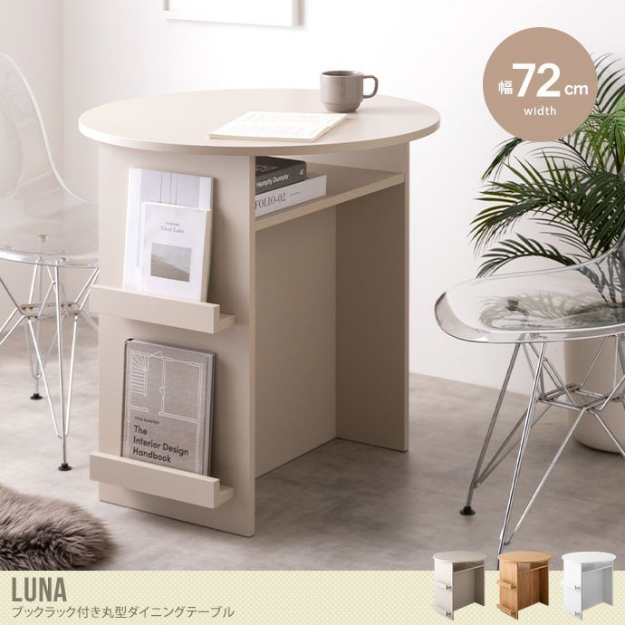 他の画像を見る 【送料無料】Luna ルナ 幅72 ダイニングテーブル ラウンド 丸形 円形 食卓 机 デスク 収納 棚付き コンパクト 省スペース カフェテーブル 丸型 ブックラック マガジンラック 本 PC 雑誌 来客 食事 作業台 リビング 一人暮らし 1人掛け 2人 グレージュ 販売価格 ¥ 12,999 税込 送料込 カートに入れる お気に入りに登録する
