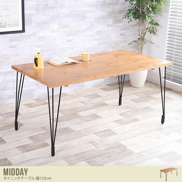 パイン材(天然木)とアイアンを絶妙に組み合わせた幅120cmのダイニングテーブル。凛としたスマートなシルエットはお部屋の雰囲気に自然と馴染み、今ある空間をより魅力的に彩ります。天板には親しみやすく、あたたかみある木目で人気の”パイン材”を使用。ラッカー塗装で耐久性も備えた仕上がりに。足元スペースがゆったりでおウチでのくつろぎ度もアップ!!お食事やおしゃべりをより楽しんで頂けますよ♪グラつきやガタつきを感じさせない安心安全の設計で長くご愛用頂けます。