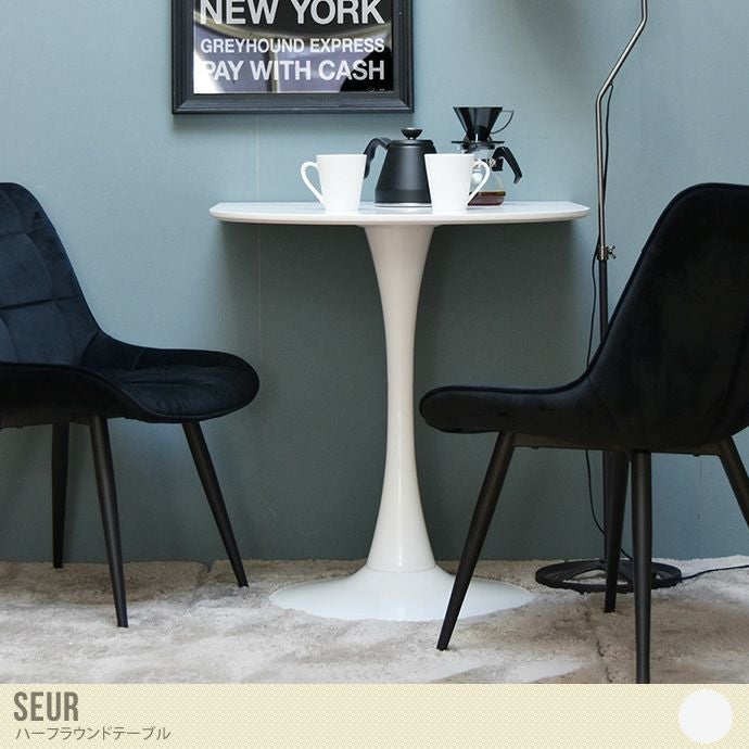 流行りの韓国スタイルインテリア「Seur(スール)ハーフラウンドテーブル」。これひとつで、オシャレにおうちカフェや寝室のナイトテーブルとしてもご利用頂けます。厚さ18mmある天板は耐水性、耐汚性に優れている為汚れてもサッと拭くだけでお手入れ簡単。どんなシーンでも馴染む、シンプルでスタイリッシュなテーブルが何気ない日常に「特別な空間」をもたらしてくれます。