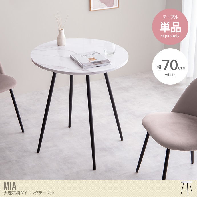 清潔感溢れる上品な佇まいの『Mia(ミア)』の大理石柄テーブル。高級感漂う大理石柄は空間のポイントとなりながら、お部屋を明るく見せ、ワンランク上の上質な空間を演出します。また、角のない丸型テーブルは、コンパクトで圧迫感を与えないので、ワンルームなどの限られたスペースにも最適です。さらに、清潔感のあるホワイトカラーは置くものの魅力を引き立て、料理などを色鮮やかに魅せることができます。ご家族やご友人でテーブルを囲んで楽しいひと時をお過ごしください。