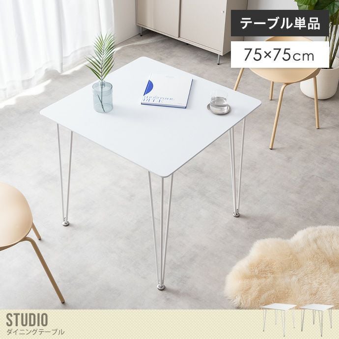 【送料無料】Studio スタジオ 幅75 ダイニングテーブル 食卓 テーブル 2人掛け 2人用 正方形 角形 一枚板 大きい 広い 天板 白脚 シルバー脚 単品 テーブル単体 おしゃれ おすすめ 安い 一人暮らし 同棲 二人用 ふたり暮らし ホワイト