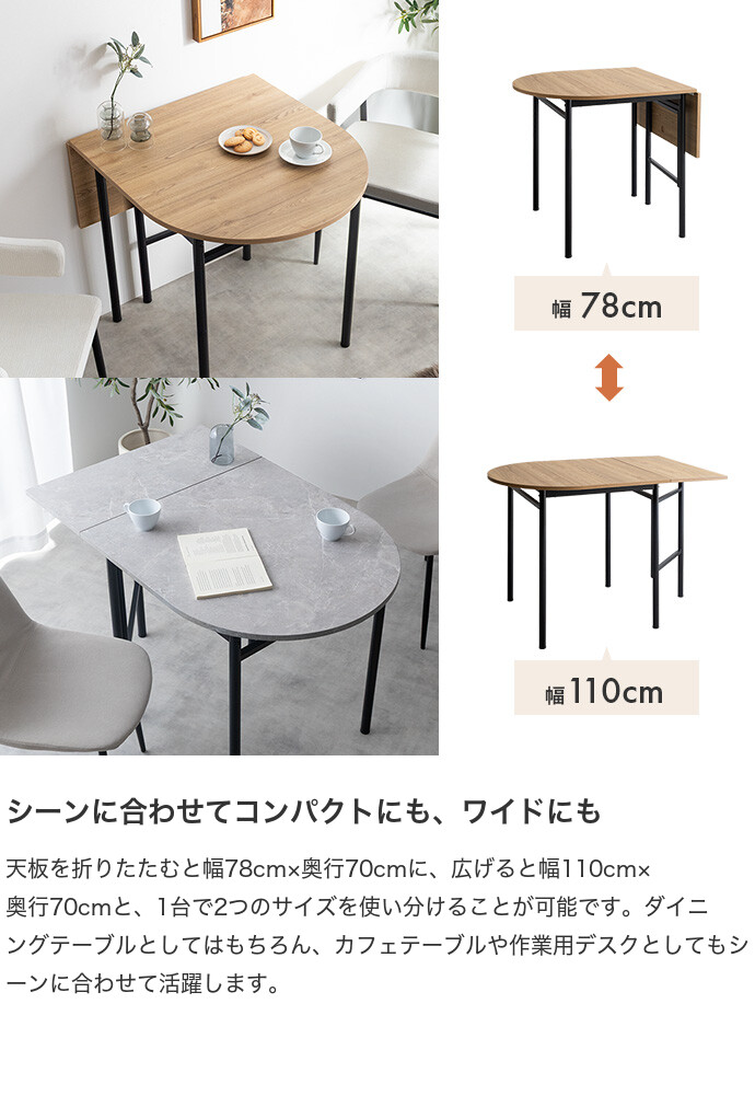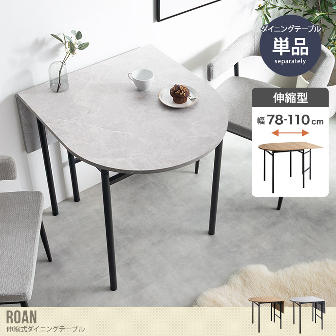 【送料無料】Roan ロアン 幅78 幅110 ダイニングテーブル 机 おしゃれ おすすめ 安い バタフライ 伸縮 ストーン 石目柄 木製 木目 一人暮らし コンパクト 伸長式 半円 折りたたみ 2人 3人 省スペース 食卓 カフェ 単品 リビング ダイニング ナチュラル
